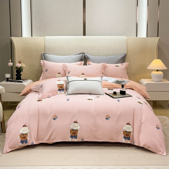 The product is 4pcs bedding set. It’s made of cotton fabric by default. We support doing ODM/OEM. We can provide fabrics both solid colors and printing(from 75-150gsm)/the weight of fillings ranges from 150-500gsm.Both of which can be customized according to customer’s needs.