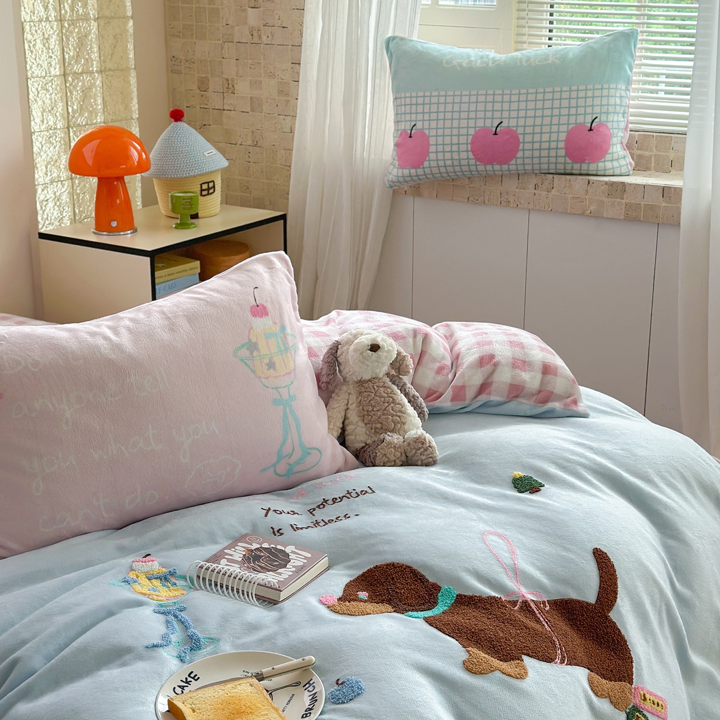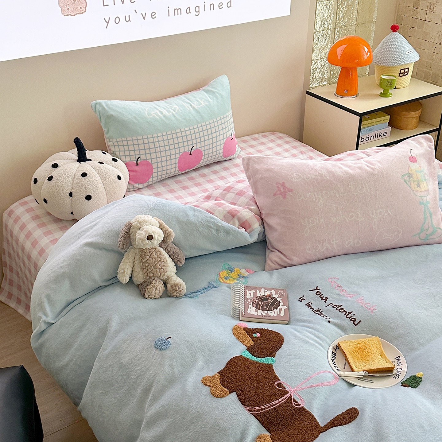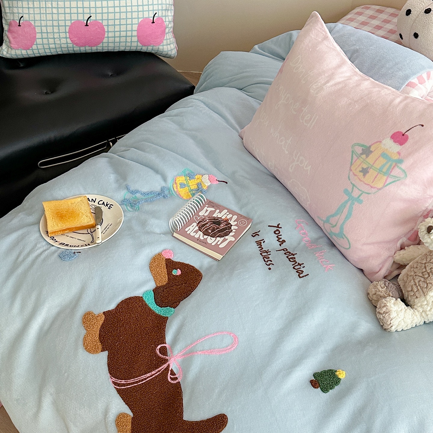 New Milk Velvet Cartoon Embroidery Duvet Cover Queen King Bed Sheets Children Bedding Set