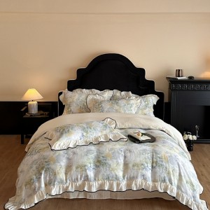 New pure cotton double-layer French wrinkled yarn digital printing four-piece set