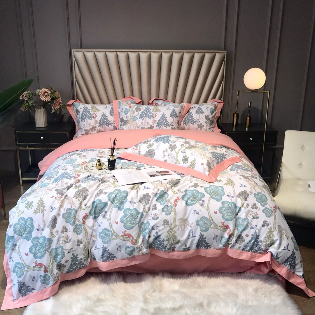 Pink 60S Cotton Duvet Cover Plant Floral Printing Bedding Set Bed Sheets