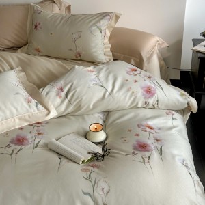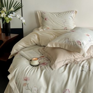 Pink Tencel cotton high-grade four-piece set brushed digital printed bed sheets quilt cover bedding set