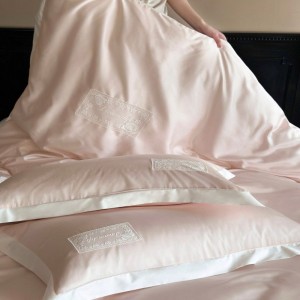 Plain color 100s lyocell cotton home textile pink duvet quilt cover lace bedding set