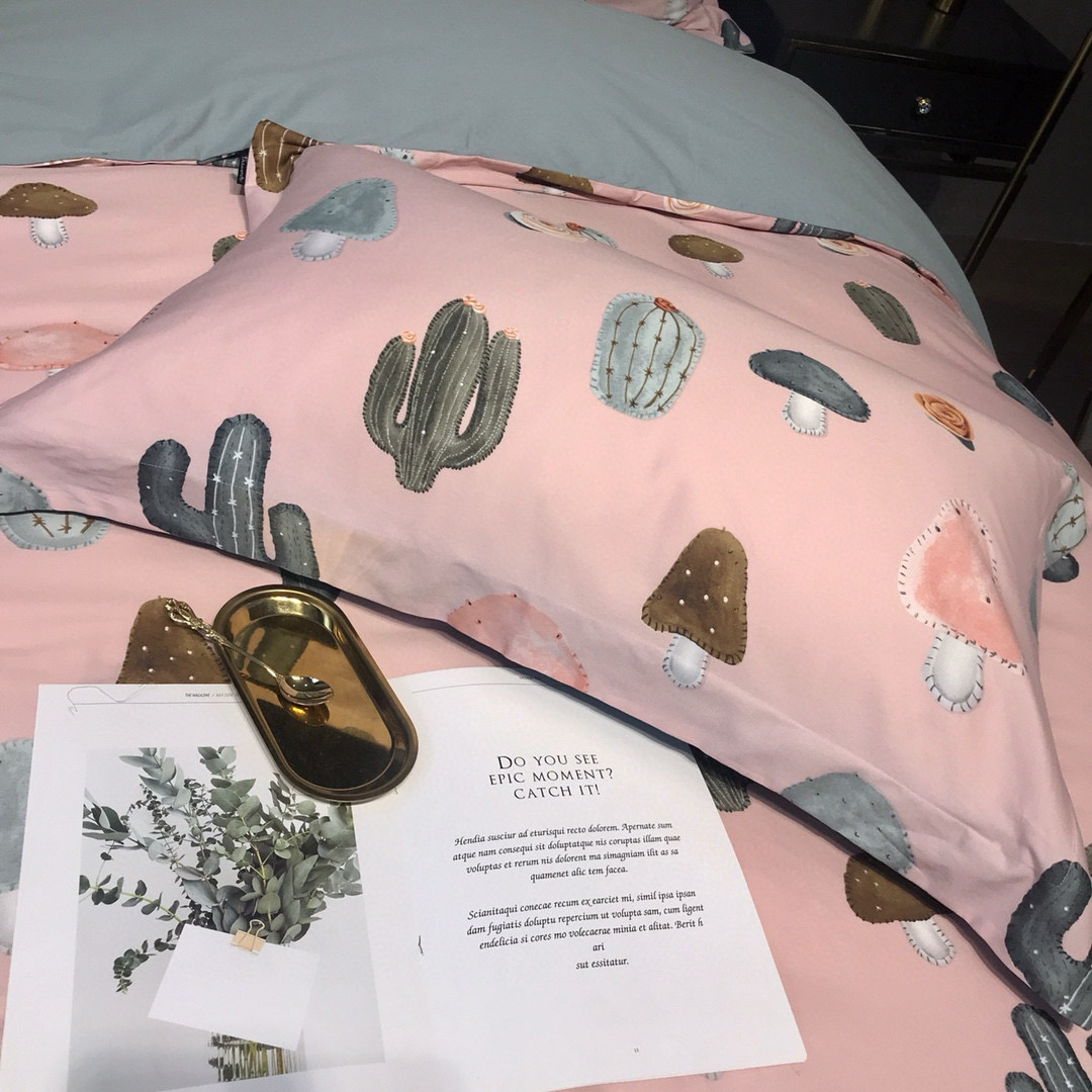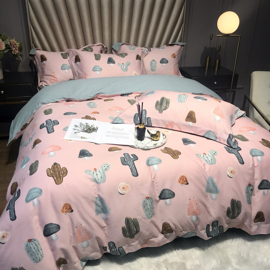 Plant Floral Digital Printing Duvet Cover 300TC Stain Cotton Brushed Bed Sheets Home Bedding Set