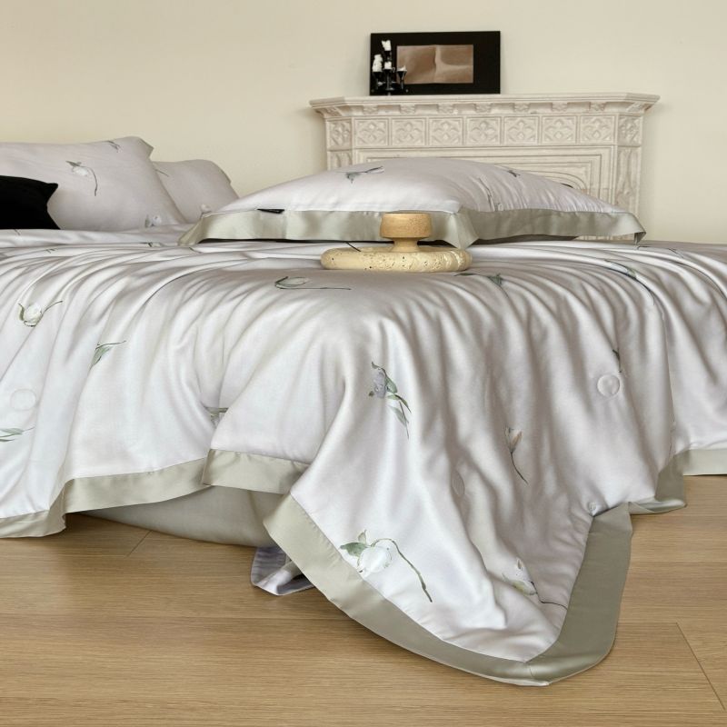 Premium Cooling Lyocell Summer Quilt Queen King Air-condition Quilt 4PCS Pillowcases Bed Sheet Green Embroidery Bedding Set