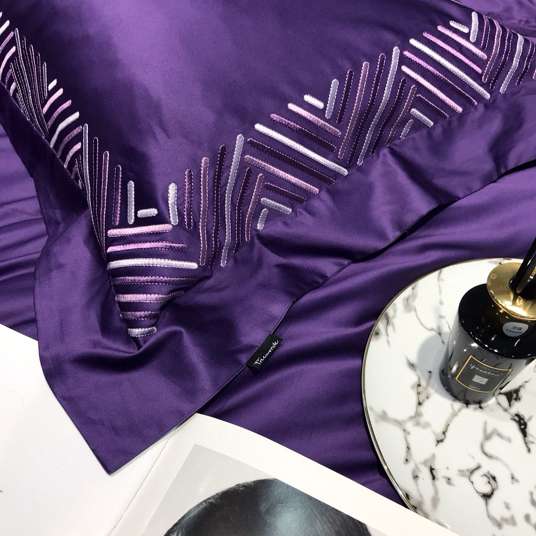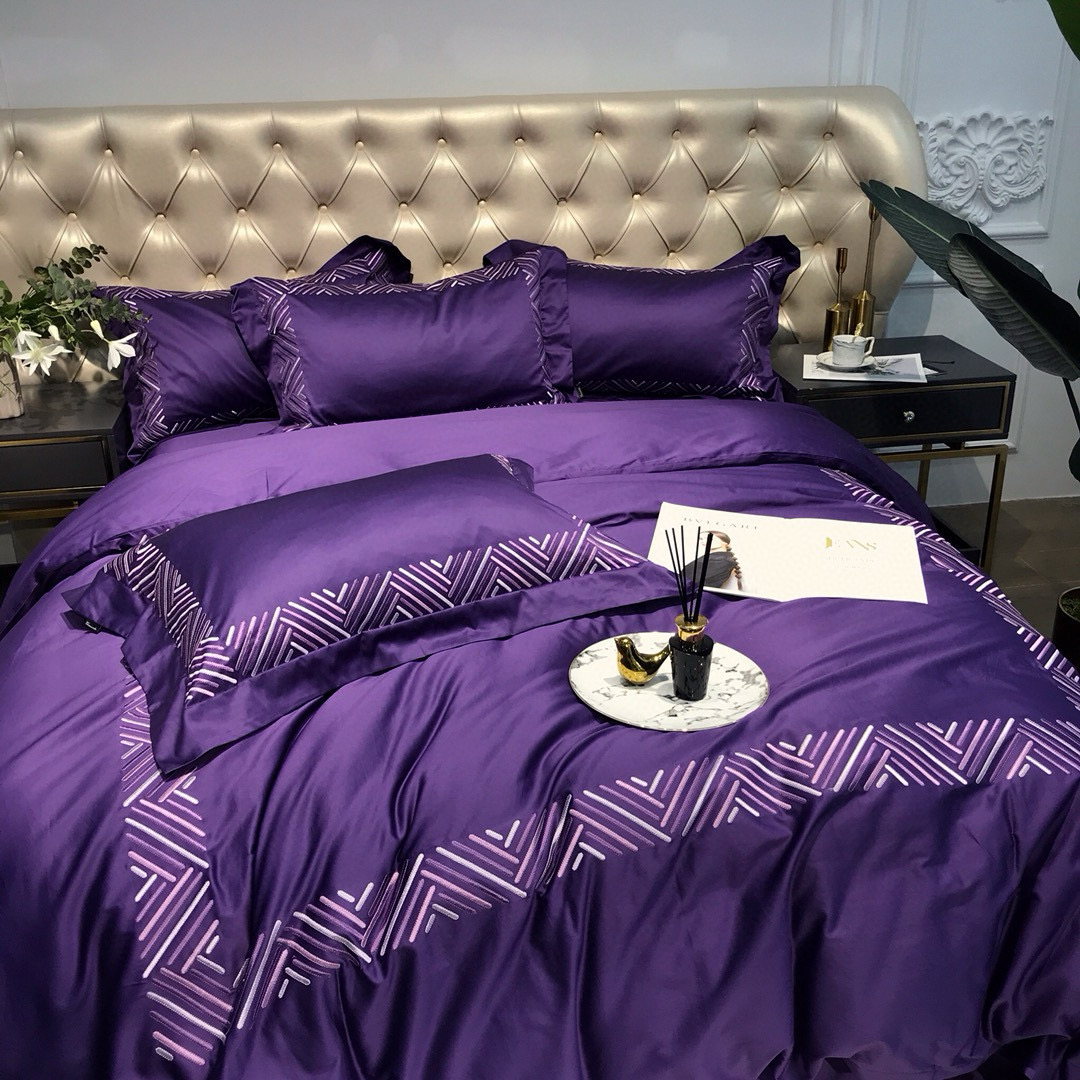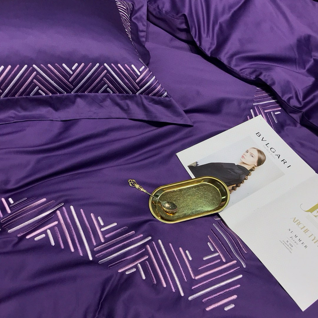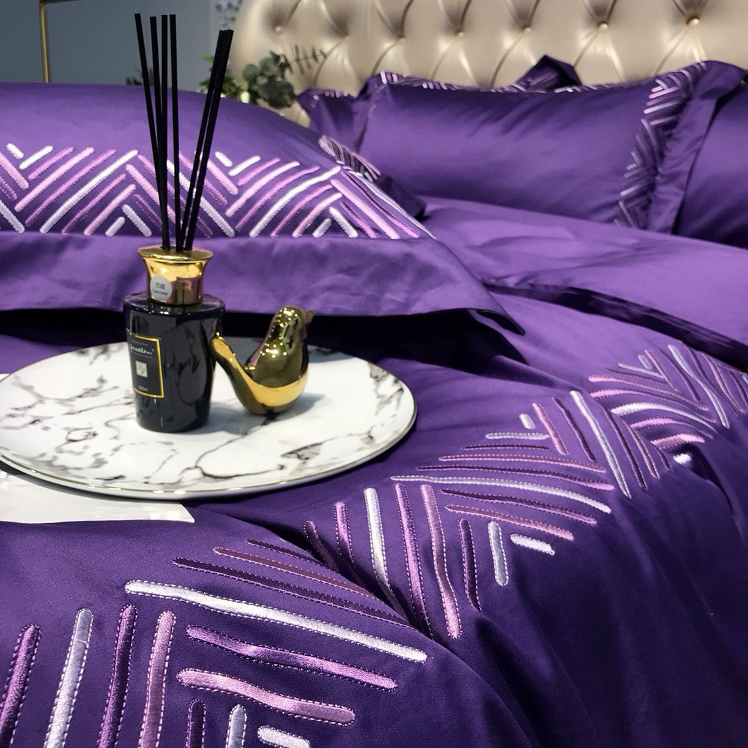 Purple 500TC Egyptian Cotton Home Textile Luxury 100% Cotton Bed Sheets Embroidery Quilt Cover Bedding Set