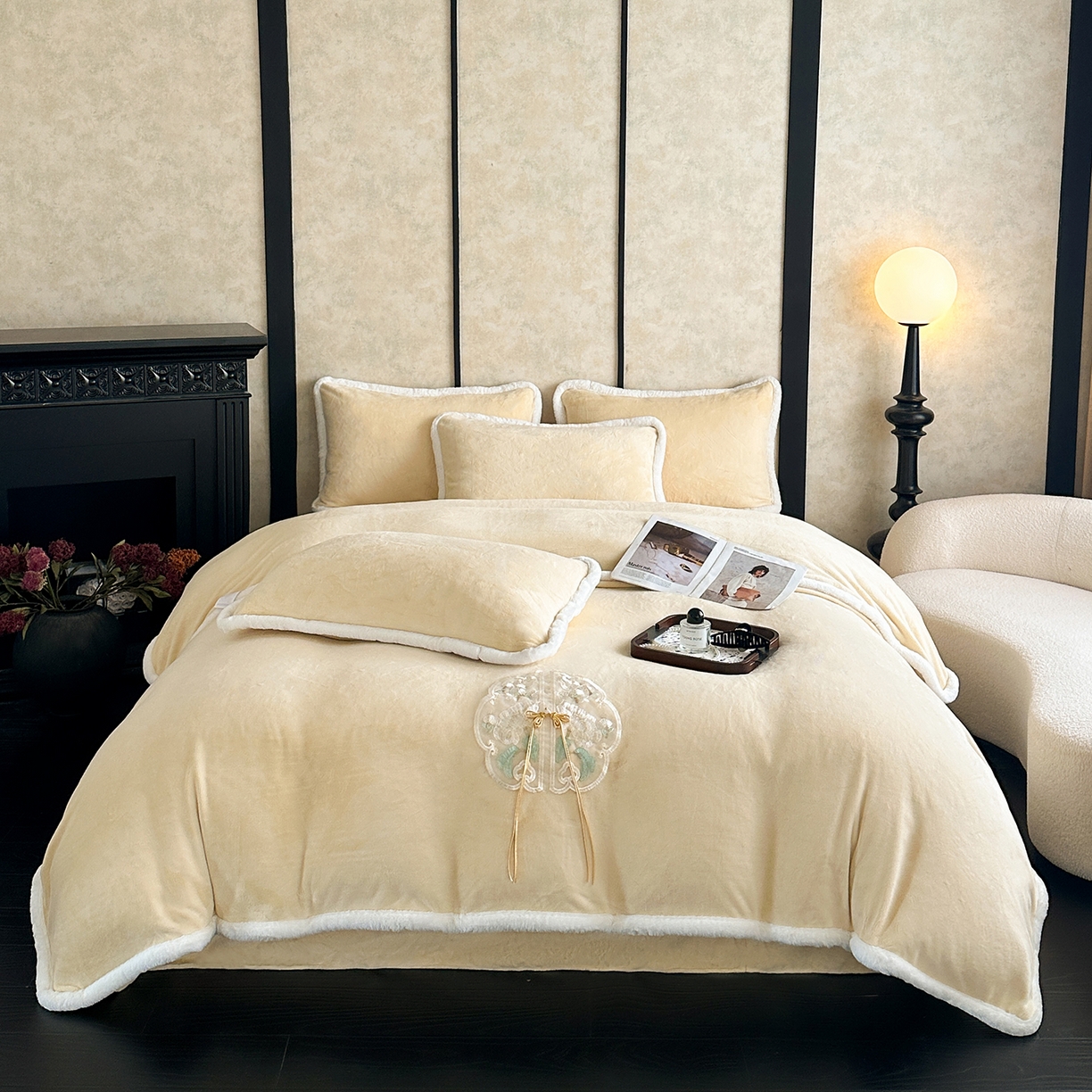 The product is 4pcs bedding set. It’s made of velvet fabric by default. We support doing ODM/OEM. We can provide fabrics both solid colors and printing(from 75-150gsm)/the weight of fillings ranges from 150-500gsm.Both of which can be customized according to customer’s needs.