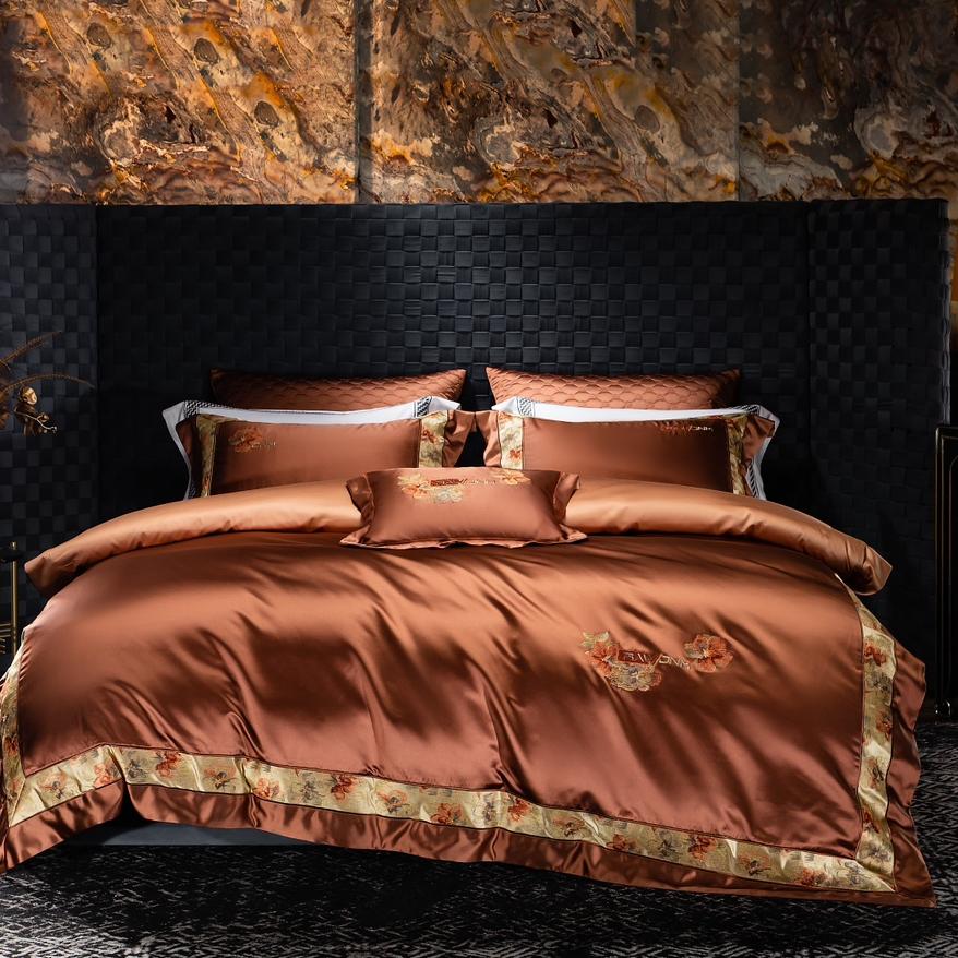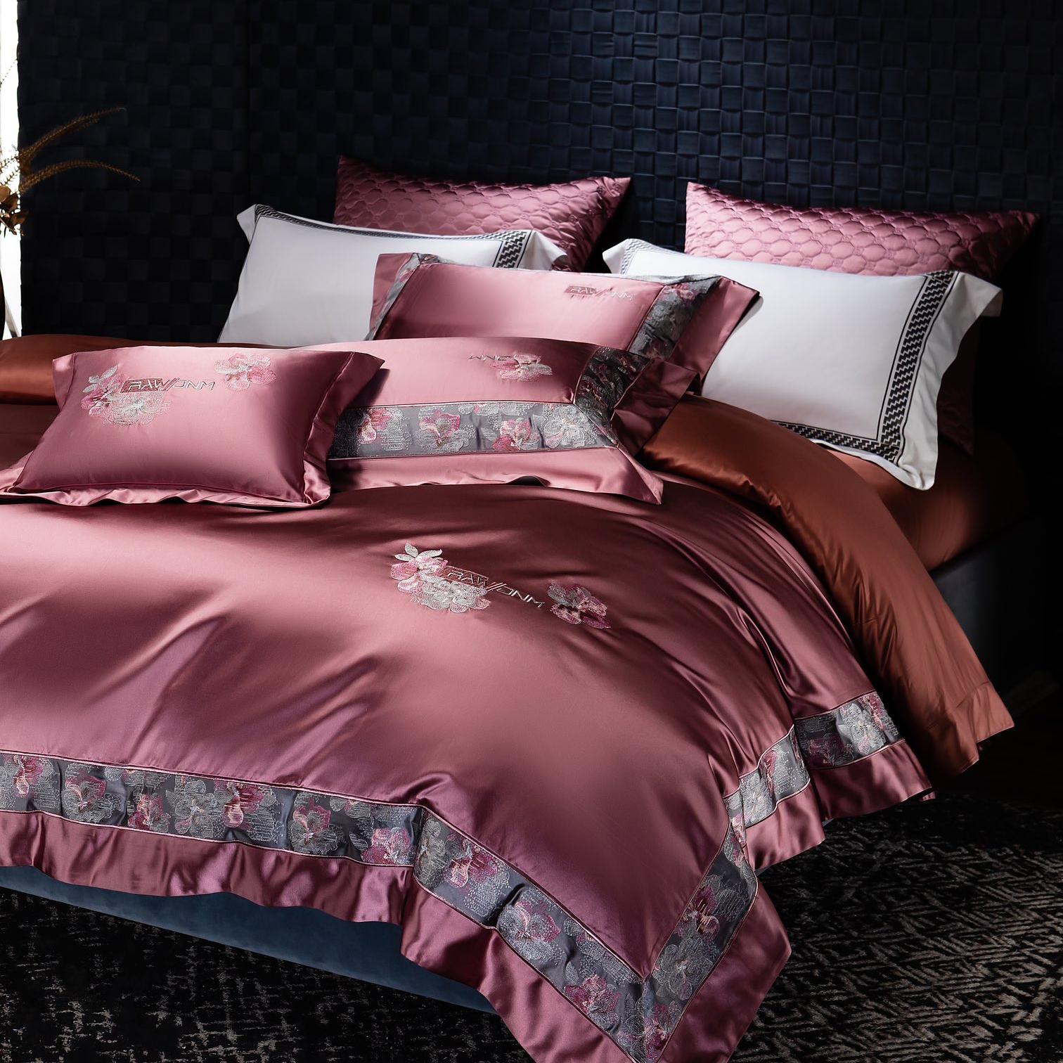 Silk cotton high-precision satin fabric embroidered four-piece set