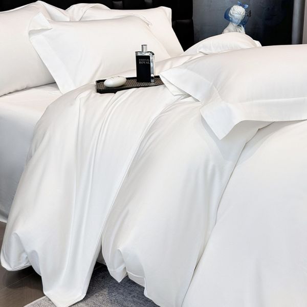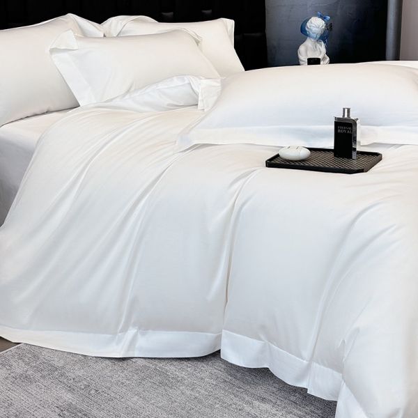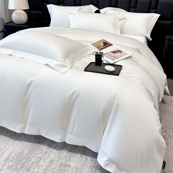 Skin-friendly 100s satin long staple cotton white duvet cover bed sheets bed linen queen king bedding set