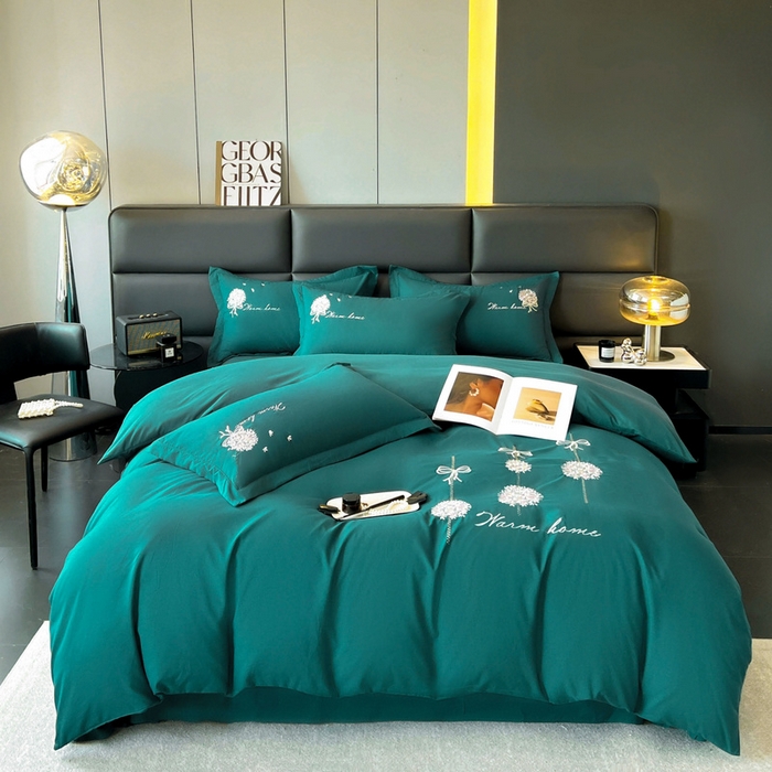 Skin-friendly and comfortable solid color embroidered four-piece set