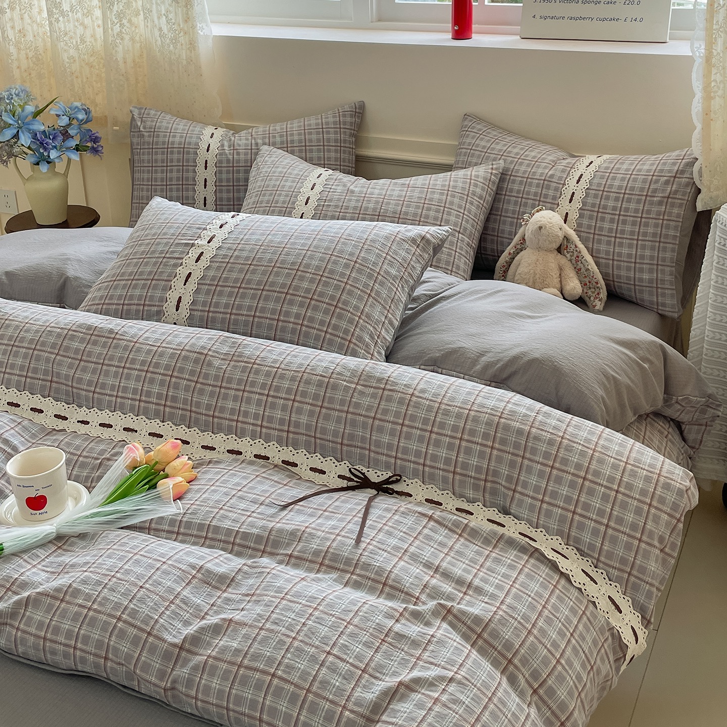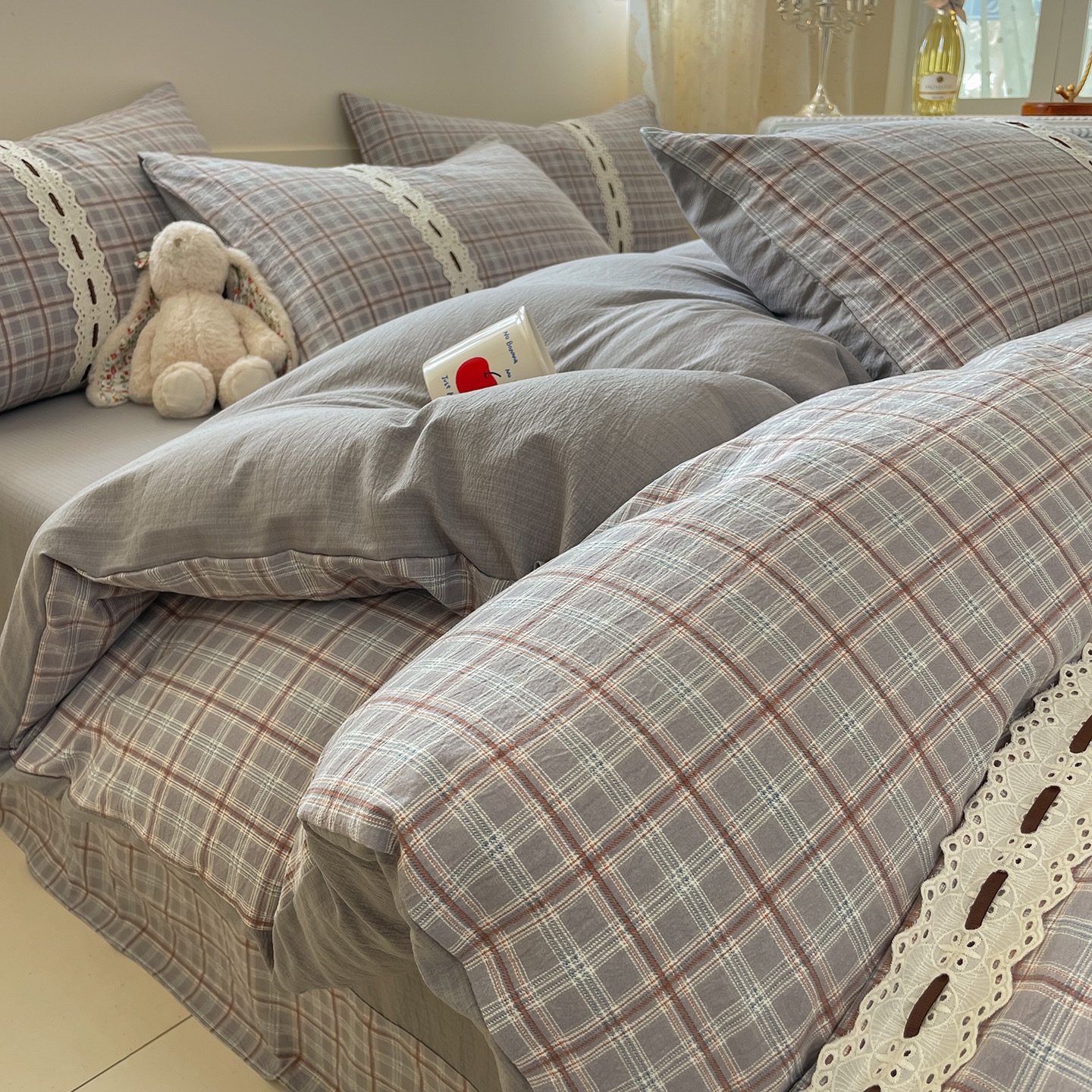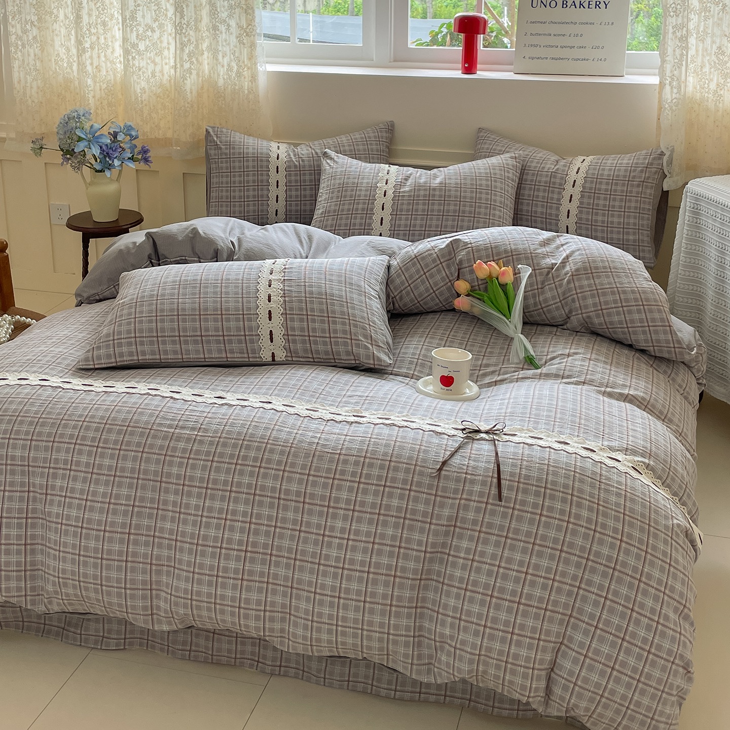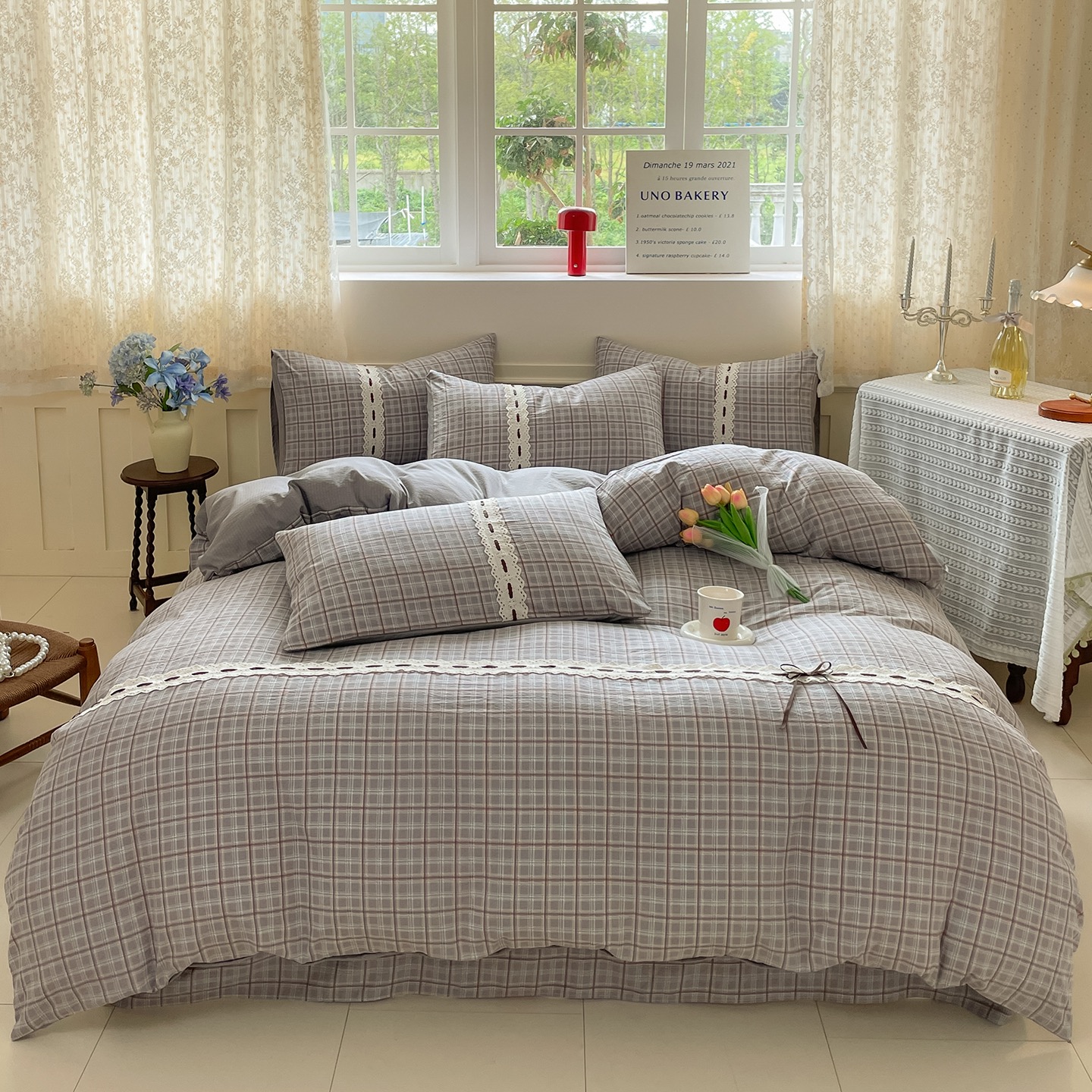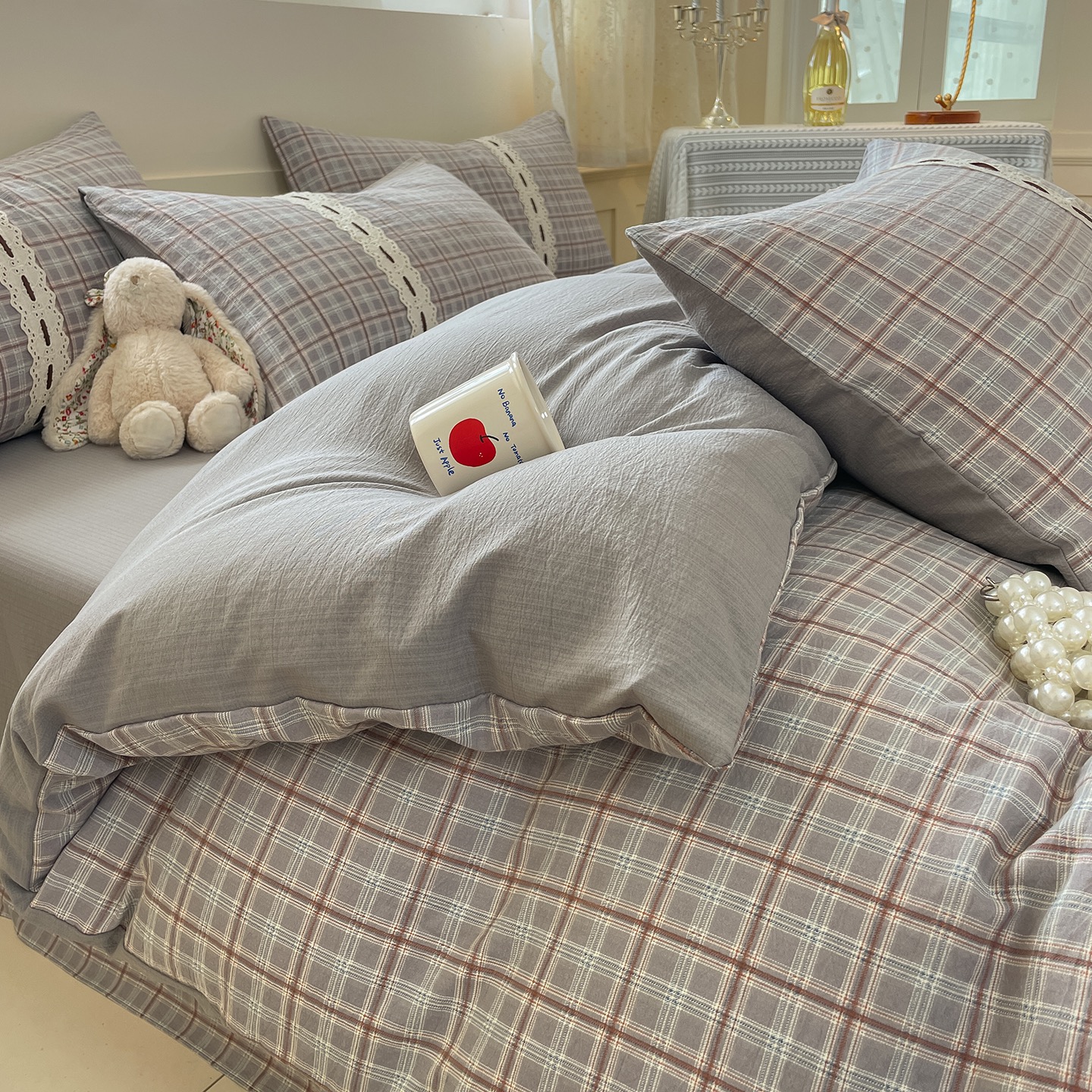 Skin-friendly Cotton Printing Quilt Cover Gray Bed Sheets Bedding Set