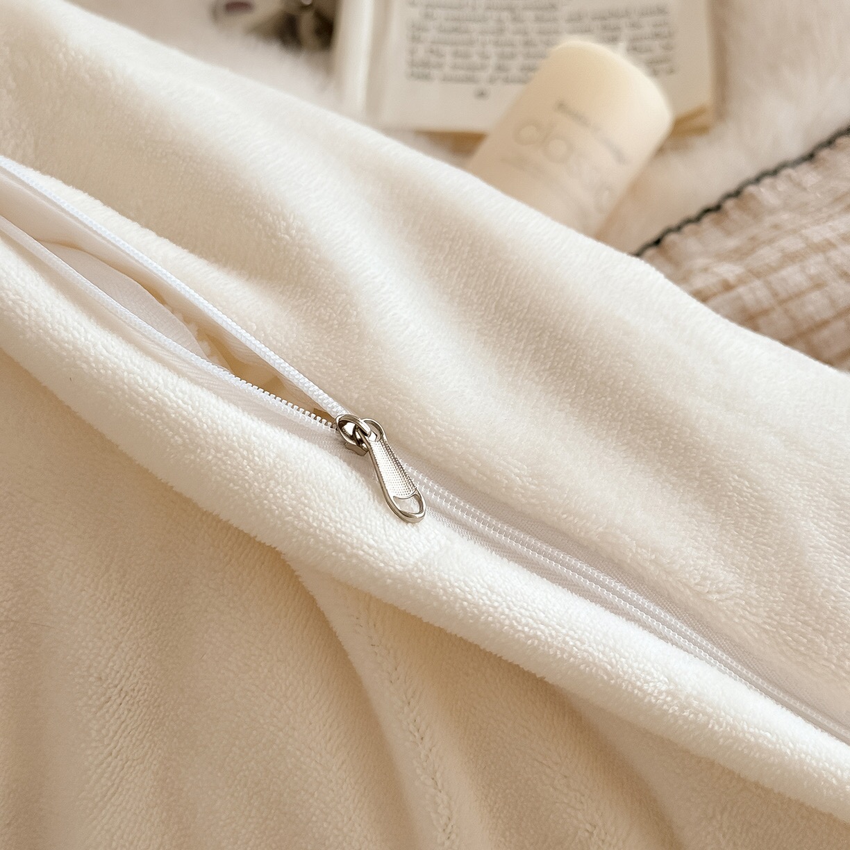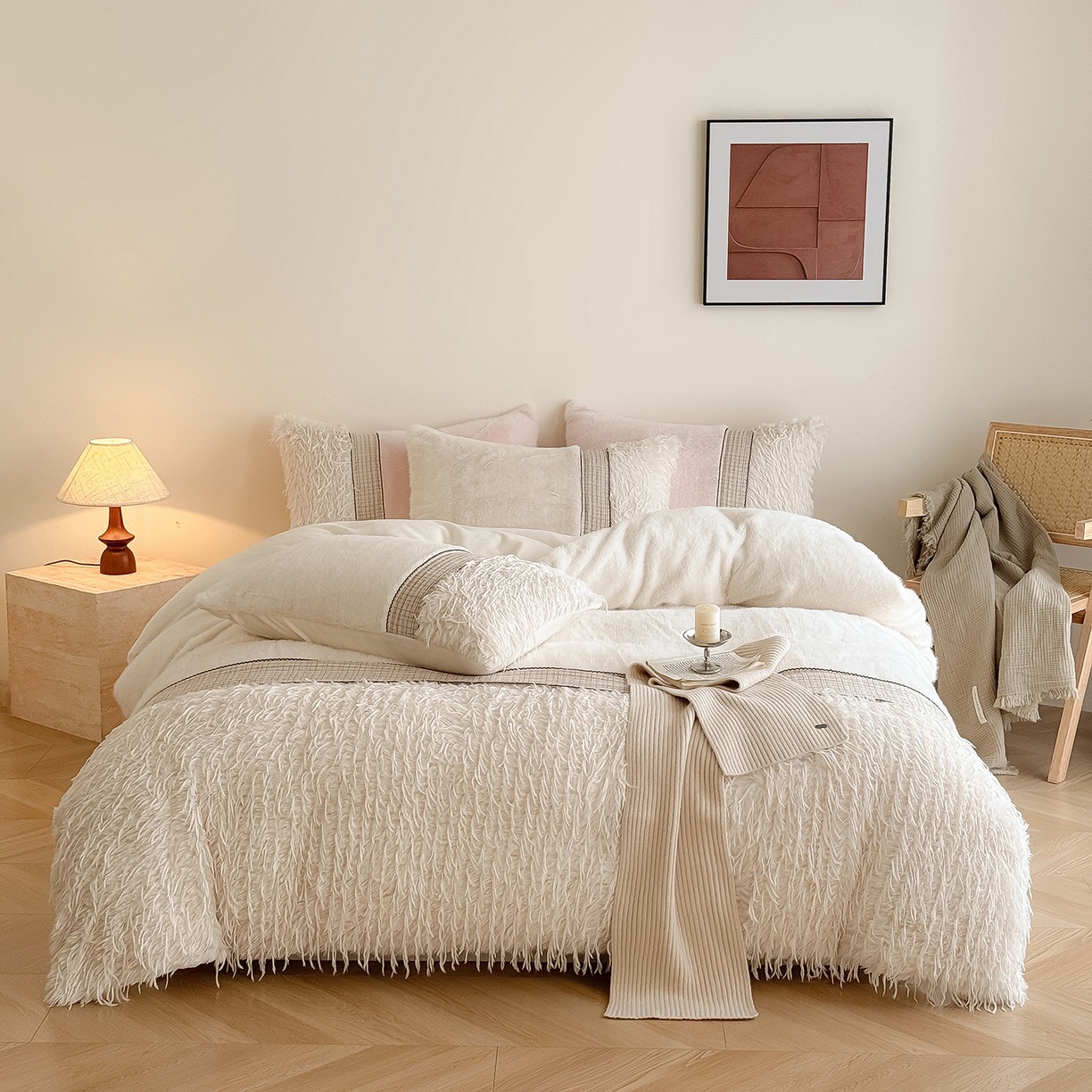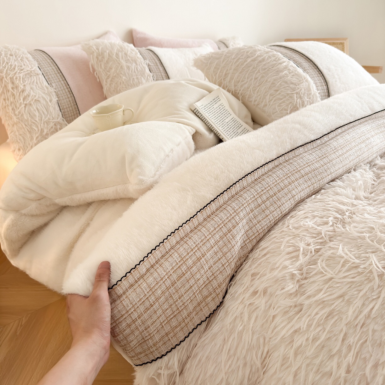Solid color white fleece home textiles winter warm patchwork bedding set wholesaler