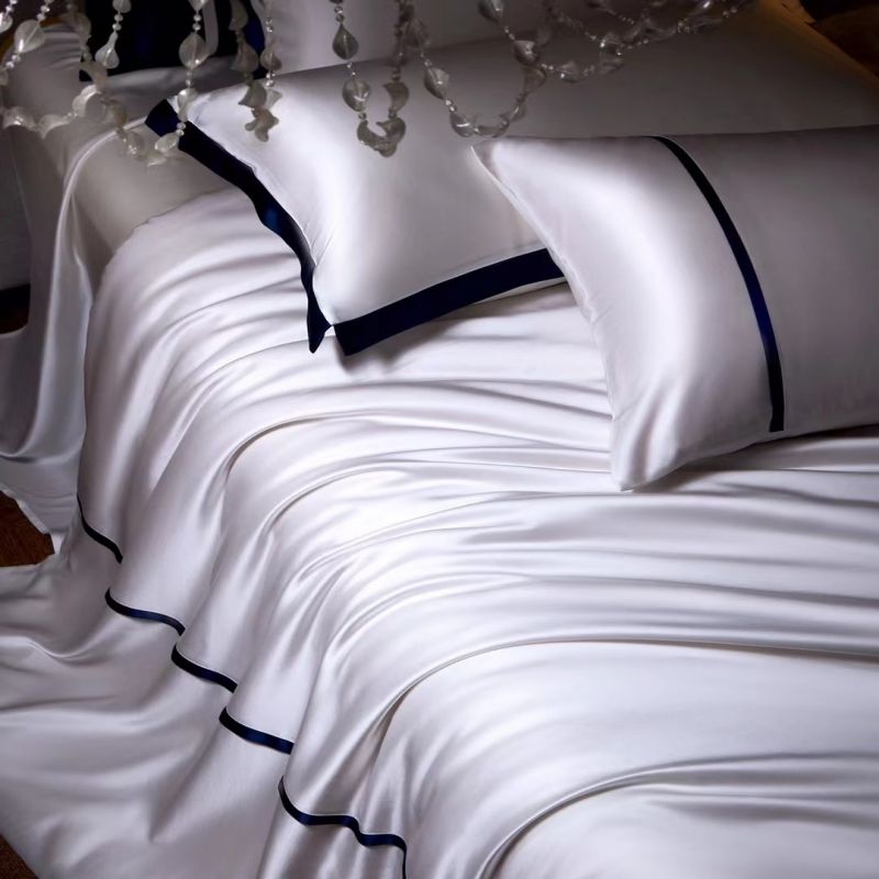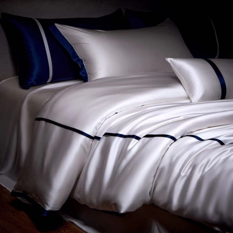 The product is 4pcs bedding set. It’s made of silk fabric by default. We support doing ODM/OEM. We can provide fabrics both solid colors and printing(from 75-150gsm)/the weight of fillings ranges from 150-500gsm.Both of which can be customized according to customer’s needs.
