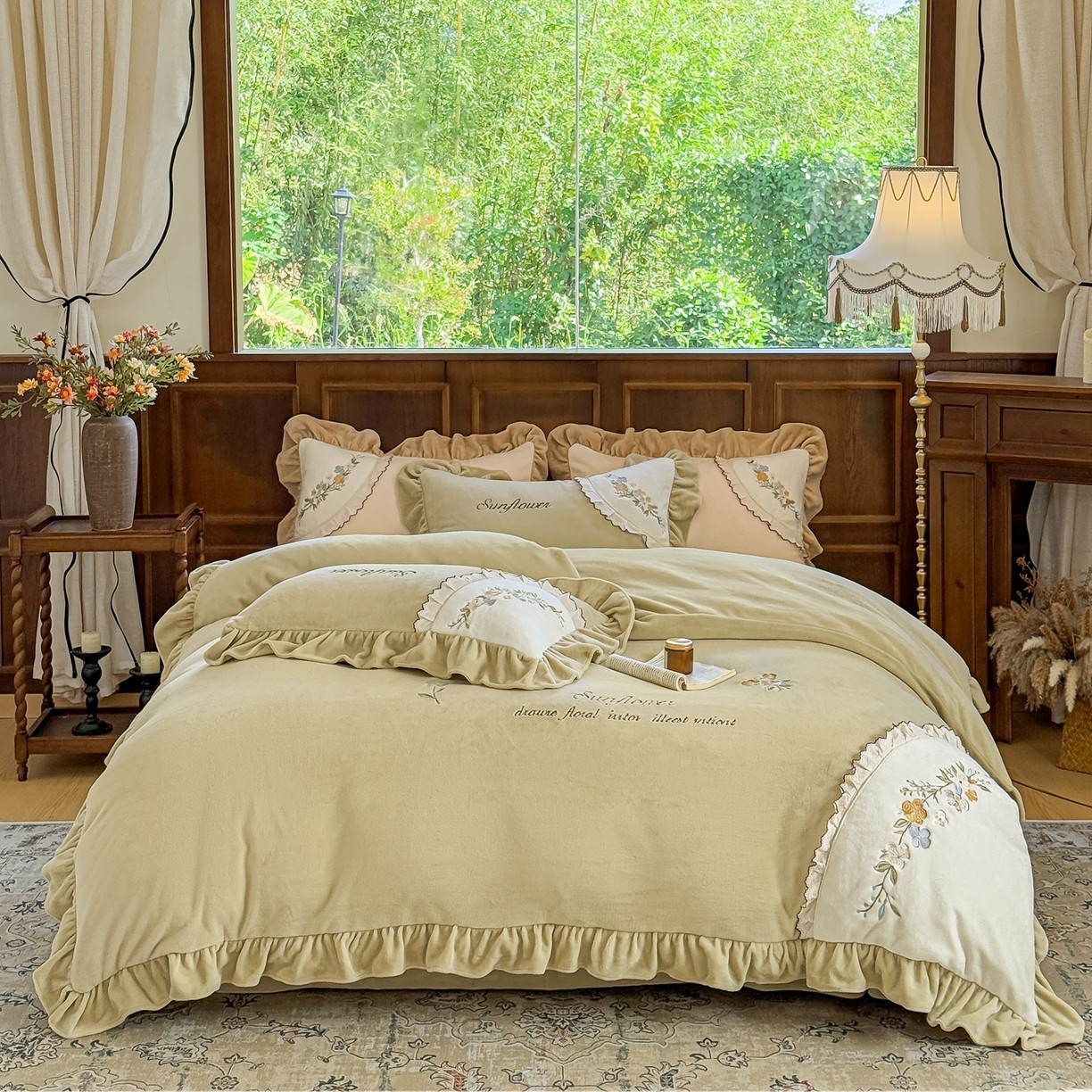 Thickened warm milk velvet Korean-style lace embroidery four-piece set