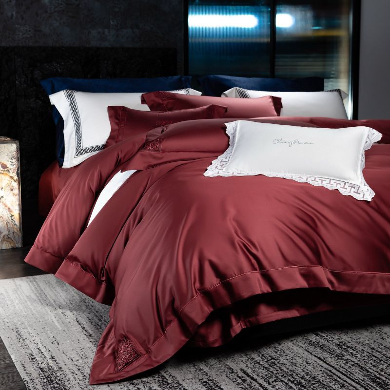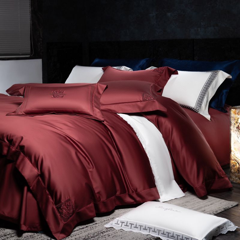 Top Luxury Red 1000tc Egyptian Cotton High End Embroidery Duvet Cover Bed Sheets Queen King 4PCS Bedding Set