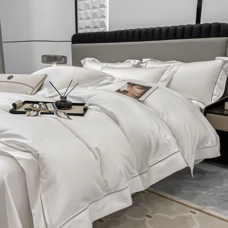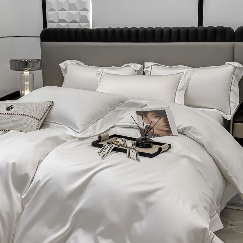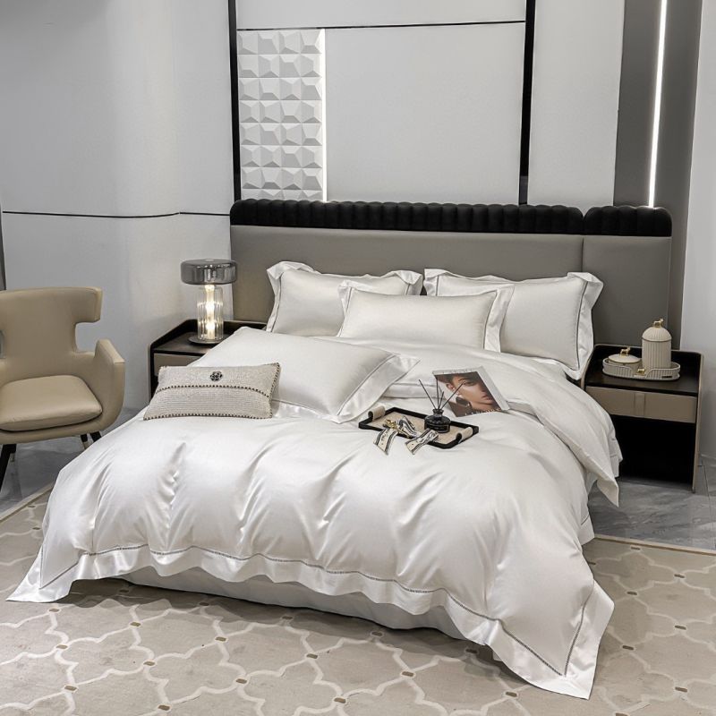 White 160s Satin Egyptian Cotton Quilt Cover Bed Sheets Luxury Plain Color Duvet Cover Flat Sheet 4PCS Bedding Set