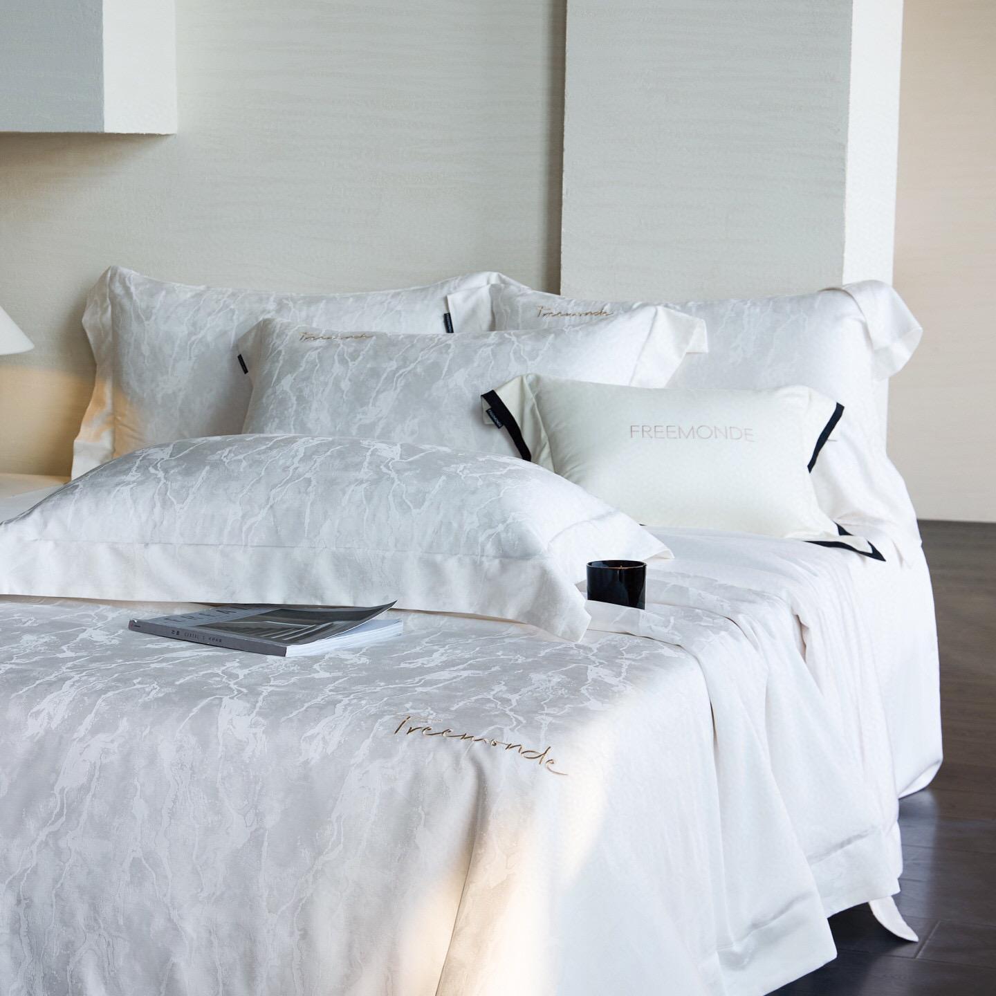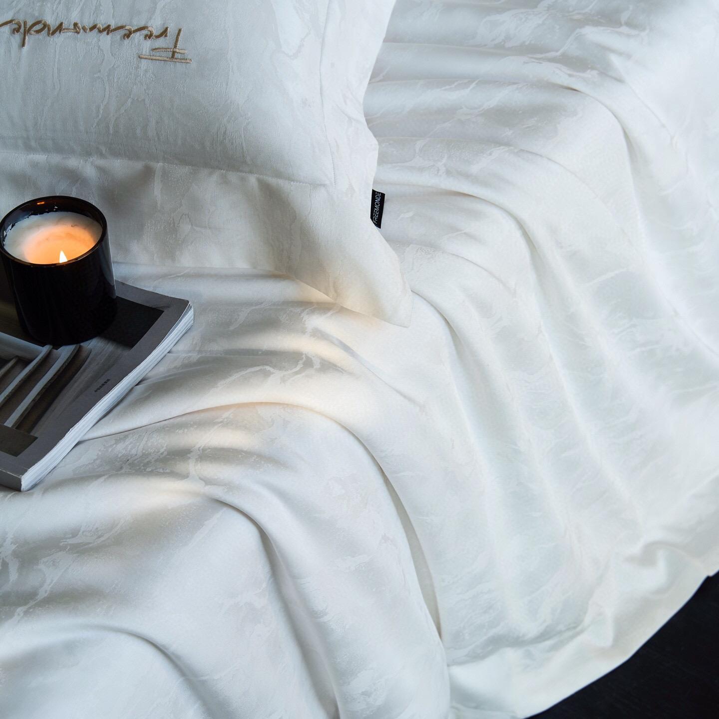 White lyocell cotton 4pcs home textiles white jacquard duvet cover bedding set supplier