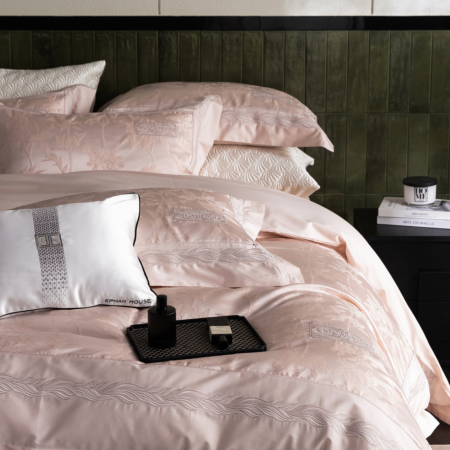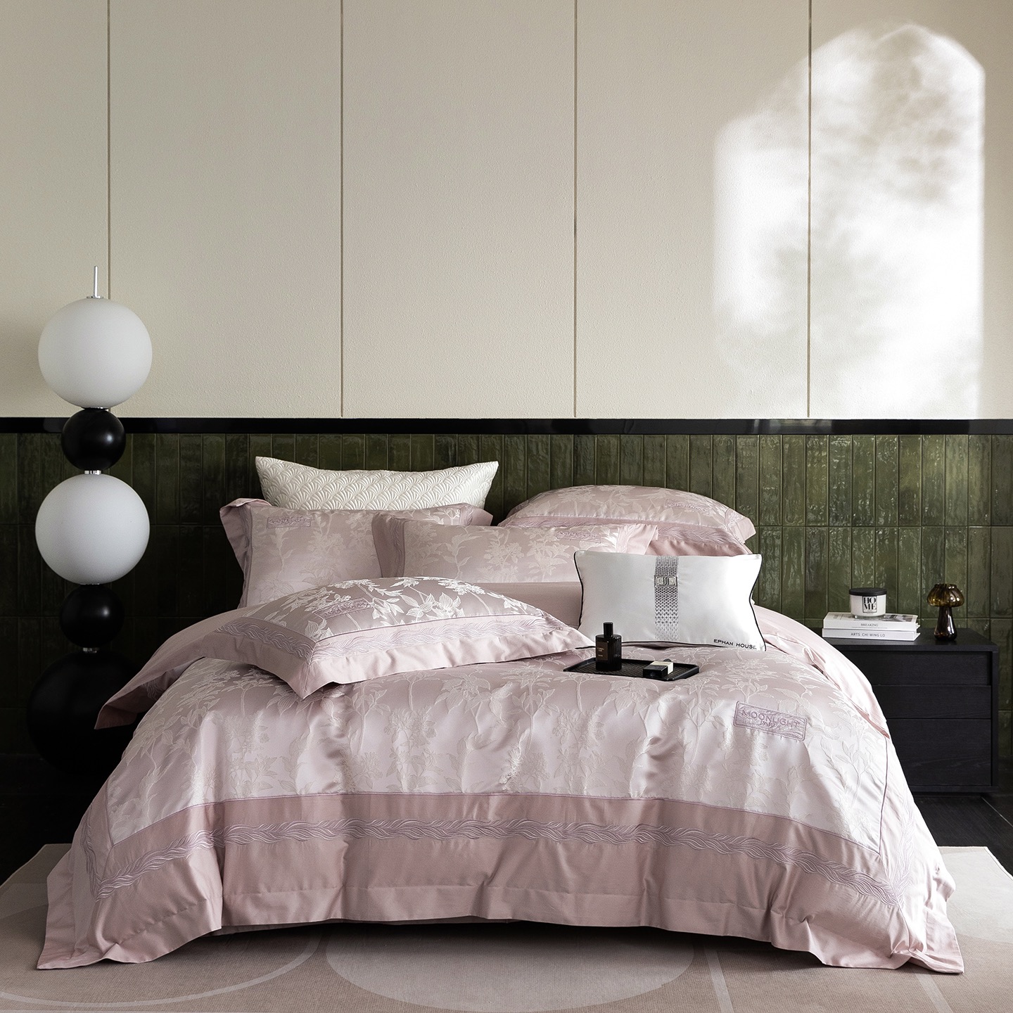 Wholesale high-end pillowcases pink jacquard comforter set soft bed linen fitted sheets 2m/2.2m bedding set for adults