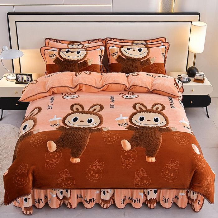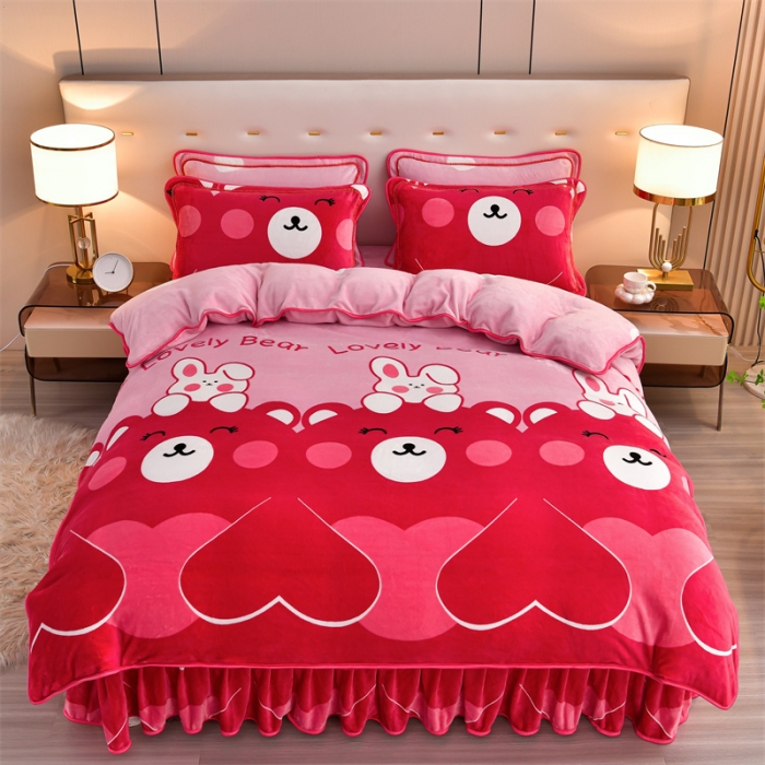 Winter Fleece Flannel Bed Skirt Set High-Gram Four-Piece Set