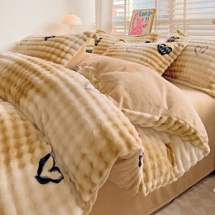 Winter orange comforter sets premium printing bedsheets 2 soft pillow shams milk velvet bedding set manufacture