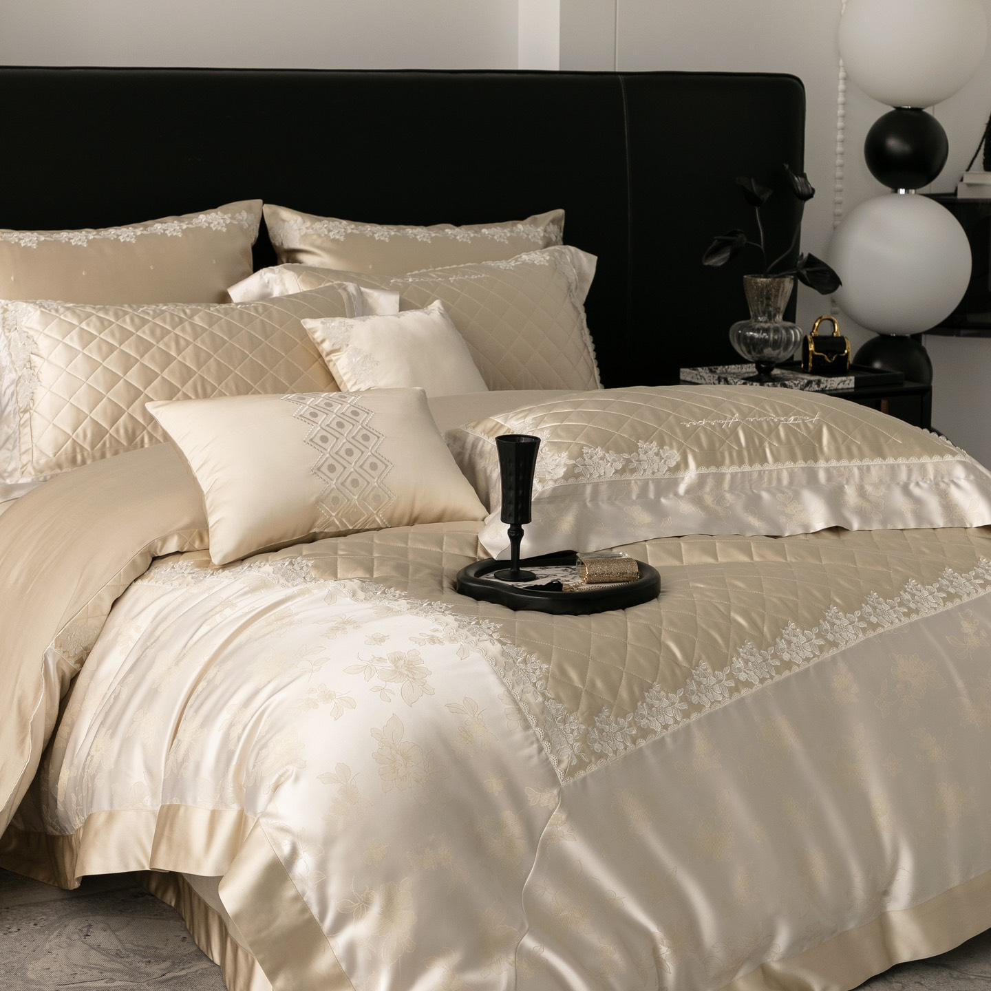 Yarn-dyed jacquard quilted embroidered water-soluble lace four-piece set